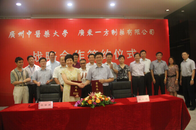 廣州中醫藥大學(xué)黃斌書(shū)記對此次與我司的戰略合作表示衷心的祝賀,肯定了一方制藥在中藥配方顆粒領(lǐng)域的領(lǐng)導者地位及成績(jì),并希望我司通過(guò)此次戰略合作,加強學(xué)校與企業(yè)在科技領(lǐng)域的創(chuàng )新升級,為中藥配方顆粒產(chǎn)業(yè)做出更多的與貢獻。我司譚登平董事長(cháng)代表公司感謝廣州中醫藥大學(xué)對我司的高度認可和肯定,并表示將通過(guò)產(chǎn)學(xué)研基地模式的建立,使學(xué)校和企業(yè)之間的平臺、優(yōu)勢緊密結合,共同推動(dòng)中藥配方顆粒及中醫藥領(lǐng)域的創(chuàng )新,實(shí)現雙方的互利共贏(yíng),為進(jìn)一步壯大和發(fā)展相應產(chǎn)業(yè)做出自己的貢獻。