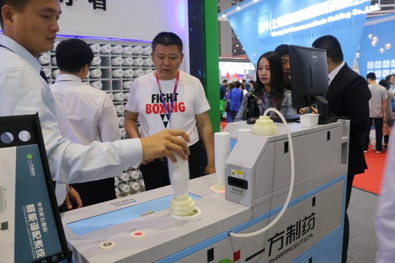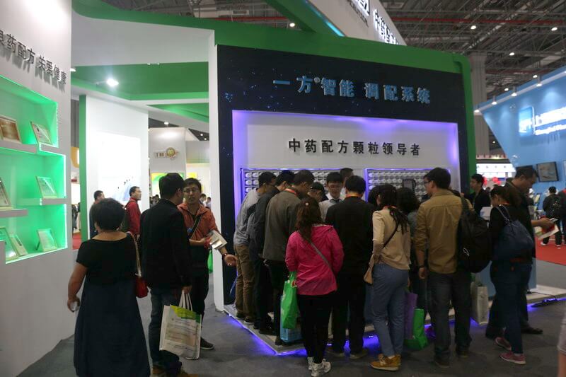 本次展會(huì ),一方制藥現場(chǎng)延續了上屆的開(kāi)放式風(fēng)格,四周突出的“中藥配方顆粒領(lǐng)導者”加強了品牌認知度,并融入了中國醫藥集團-中國中藥公司的品牌元素,整體簡(jiǎn)潔、大氣。本次展會(huì )一方制藥依然將智能化調配機系統作為展示重點(diǎn),智能化的操作設備吸引了眾多商家前來(lái)咨詢(xún)、觀(guān)看。作為國內智能化調配系統的鼻祖企業(yè),一方制藥早在1999年就已經(jīng)開(kāi)始進(jìn)行開(kāi)發(fā),并于2001年在國內率先成功研制出行業(yè)首臺設備,通過(guò)十余年的不斷升級改進(jìn),配藥效率、產(chǎn)品穩定性、操作便利性及設備智能化等指標均穩居行業(yè)首位。