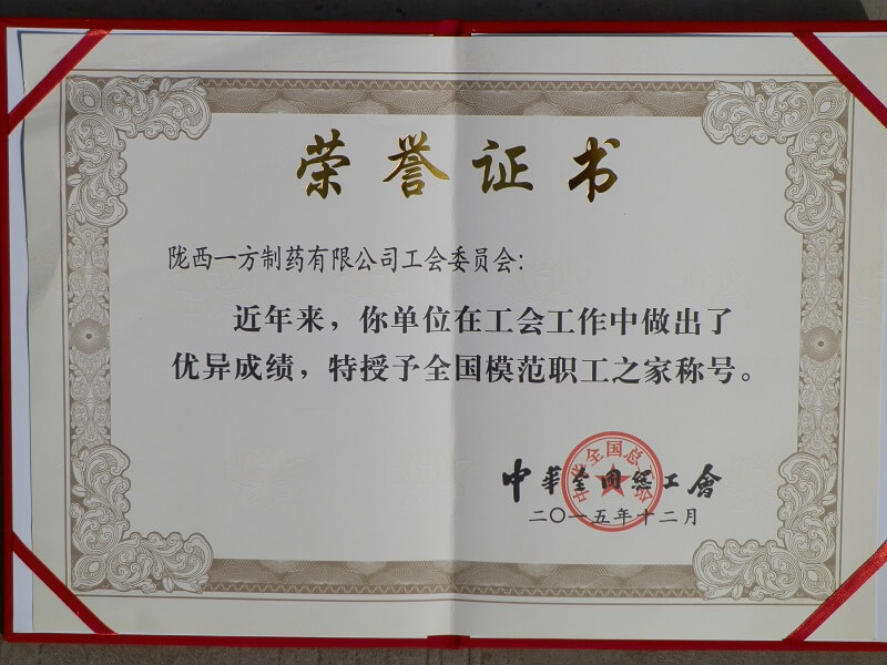 2016年4月中華全國總工會(huì )下發(fā)了《關(guān)于表彰全國模范職工之家、全國模范職工小家、全國優(yōu)秀工會(huì )工作者的決定》,隴西一方工會(huì )榮獲2015年“全國模范職工之家”榮譽(yù)稱(chēng)號。