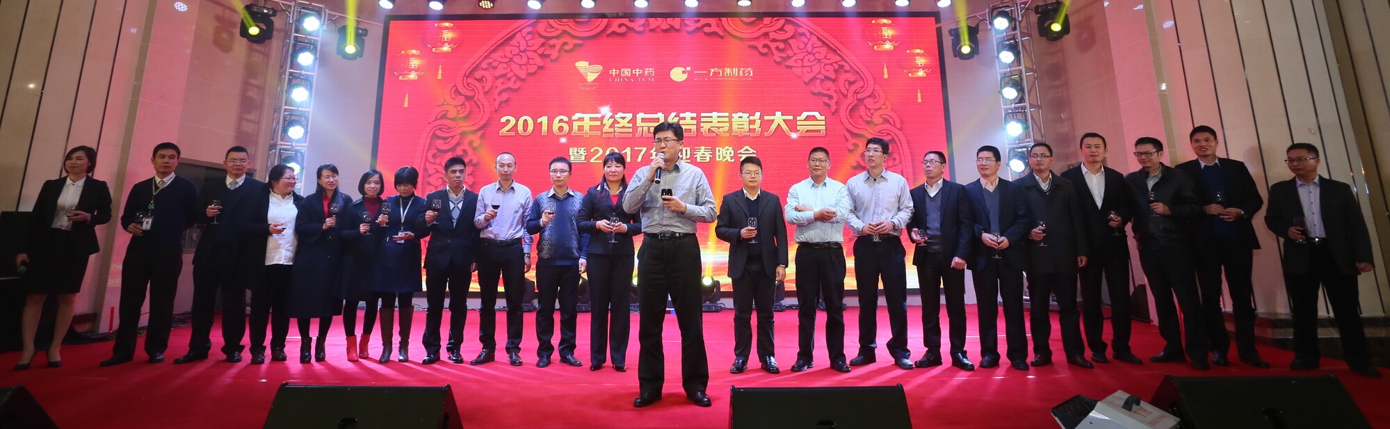 金猴辭舊歲,雄雞鬧新春。為總結2016,表彰優(yōu)秀,展望未來(lái),布局2017,廣東一方制藥有限公司在佛山舉行了年度工作總結表彰大會(huì )暨新年晚會(huì ),公司全員盛裝參加了本次活動(dòng),共同回顧了2016年度一方制藥輝煌的成果,分享了溫馨、精彩的時(shí)刻,中國中藥控股有限公司總裁楊斌應邀參加并做了重要講話(huà),中國中藥藥控股有限公司副總裁黃掌欣、財務(wù)總監向珍貴、人力資源副總監黃瀚君等也一同出席。