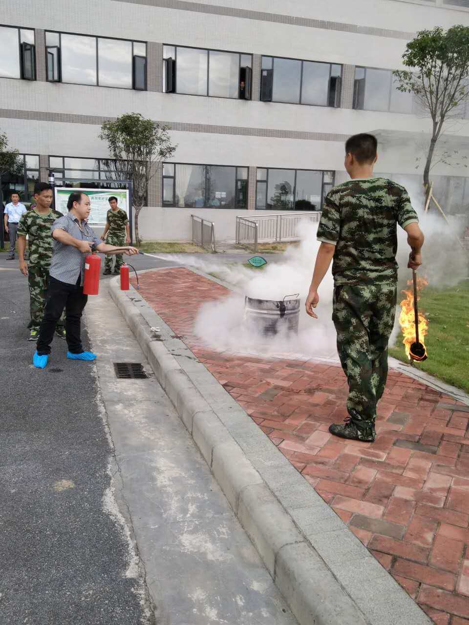 下午4點(diǎn)整,模擬制劑五樓輔機房發(fā)生火災,值班人員發(fā)現該情況后迅速報告部門(mén)主管,部門(mén)主管接報后馬上向部門(mén)負責人匯報,并通知安全委員會(huì )成員到消防控制中心,立即成立滅火疏散指揮中心,并啟動(dòng)應急疏散程序。隨著(zhù)警報聲的響起,制劑大樓全體員工按照設定逃生路線(xiàn)迅速、有序地撤離現場(chǎng),到達緊急集合點(diǎn)后,各班組迅速清點(diǎn)人數,并報告指揮中心所有人員已全部安全撤離?!氨敬窝菥氁幏?、迅速、有序,體現了一方應急預案的完善及員工的消防安全意識比較高?!?,演練結束后和順消防中隊李指導員對我司本次應急疏散演練給予了高度的評價(jià)。