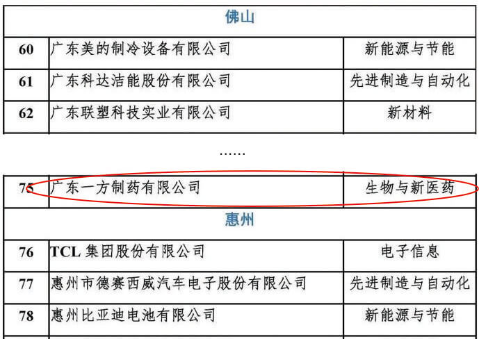 9月26日,廣東省技術(shù)經(jīng)濟研究發(fā)展中心、廣東省高新技術(shù)企業(yè)協(xié)會(huì )評選公布了2017年度廣東省高新技術(shù)企業(yè)百強榜。廣東一方制藥有限公司憑借多年來(lái)持續優(yōu)異的市場(chǎng)表現以及穩健經(jīng)營(yíng),強勢上榜廣東省高新技術(shù)企業(yè)綜合創(chuàng )新實(shí)力百強和稅收貢獻百強,成為在經(jīng)濟新常態(tài)下在智能制造、科技創(chuàng )新等方面的高新技術(shù)企業(yè)標桿。
