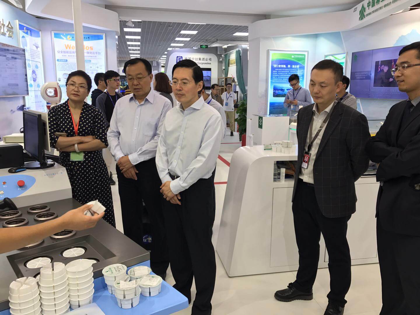 國務(wù)院國資委主任肖亞慶、國務(wù)院國資委副秘書(shū)長(cháng)周渝波等領(lǐng)導參觀(guān)了國藥集團展廳及一方中藥配方顆粒調配系統,對中醫藥產(chǎn)業(yè)的智能化發(fā)展表示了贊賞和肯定。國藥集團董事長(cháng)郭建新、副總經(jīng)理董增賀、工科部侯?lèi)?ài)軍主任等領(lǐng)導也蒞臨現場(chǎng)進(jìn)行工作指導。