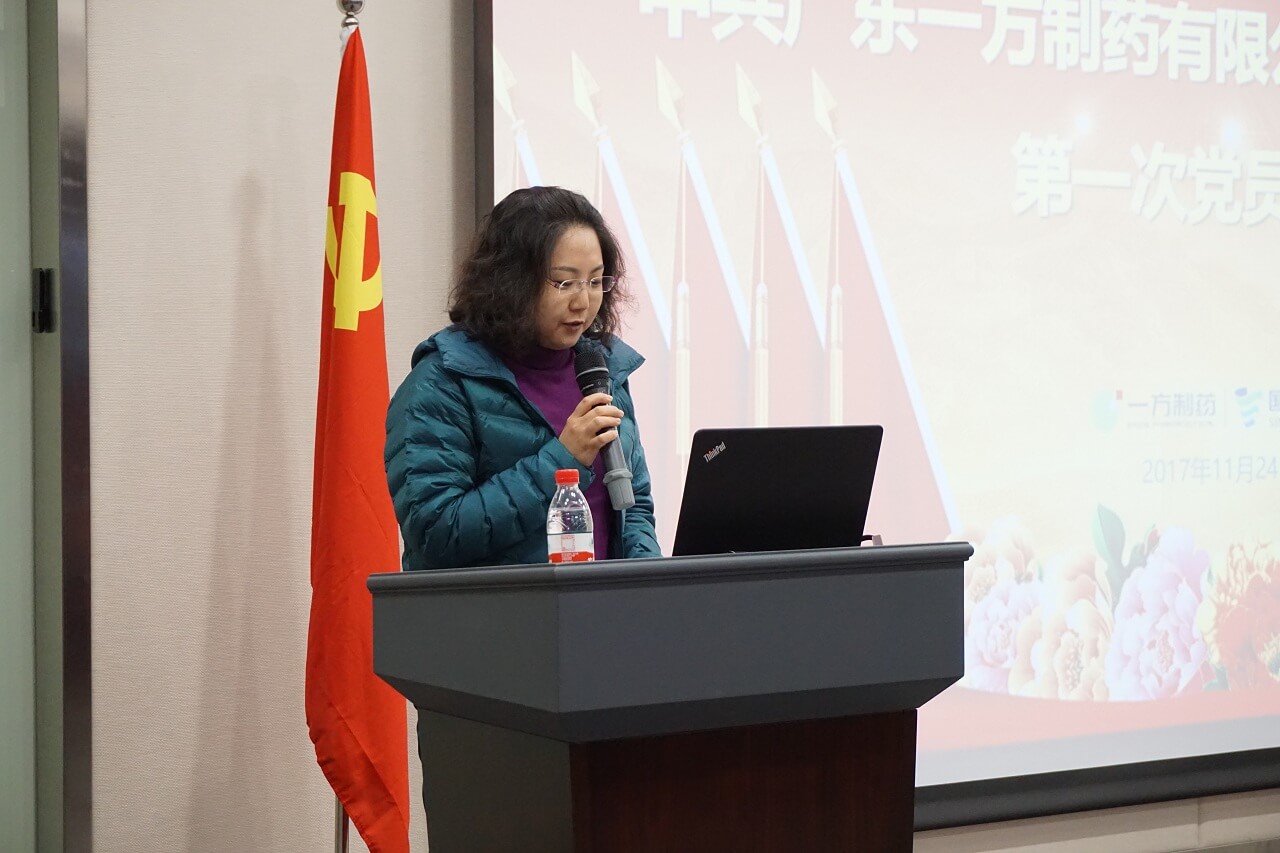 11月24日下午,廣東一方制藥有限公司黨總支部成立大會(huì )在和順廠(chǎng)區多功能會(huì )議廳隆重召開(kāi)。中國中藥控股黨委書(shū)記黃鶴、里水鎮組織工作辦主任黎敏靜、公司總經(jīng)理程學(xué)仁等同志出席了大會(huì )。大會(huì )由公司黨支部紀檢委員、財務(wù)總監沈斌斌同志主持。