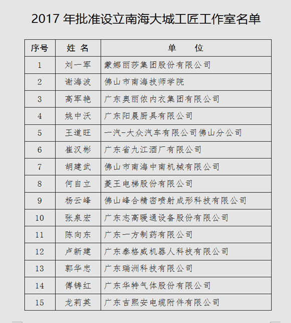 南?!按蟪枪そ彻ぷ魇摇钡脑O立,今后將匯聚更多科技創(chuàng )新資源,充分發(fā)揮技術(shù)人員的引領(lǐng)作用,以一流技術(shù),一流產(chǎn)品,一流業(yè)績(jì),助力企業(yè)提高競爭力,樹(shù)立南海區制造品牌。