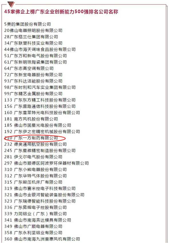 廣東省經(jīng)濟學(xué)家企業(yè)家聯(lián)誼會(huì )和廣州大學(xué)廣東發(fā)展研究院日前聯(lián)合首次發(fā)布“廣東企業(yè)創(chuàng )新能力500強”榜單,佛山共有45家企業(yè)上榜。