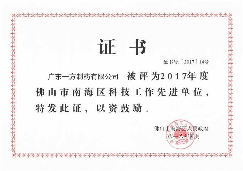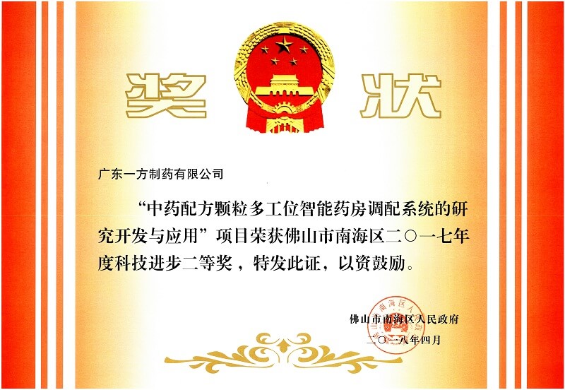 近日,廣東一方制藥有限公司憑借中藥配方顆粒多工位智能藥房調配系統的研究開(kāi)發(fā)與應用”項目,獲得了佛山市南海區人民政府頒發(fā)的2017年度佛山市南海區科技進(jìn)步獎二等獎及2017年度佛山市南海區科技工作先進(jìn)單位兩項獎項。