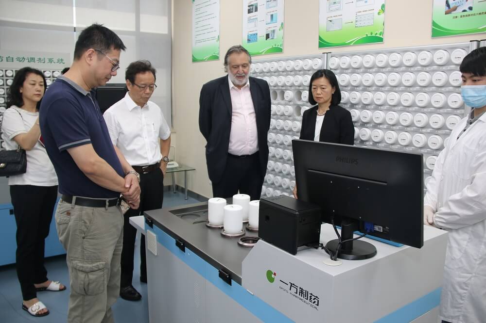 程總對遠道而來(lái)的客人表示了歡迎,并感謝西班牙中醫藥學(xué)會(huì )、ISO組織對一方制藥在國際標準及市場(chǎng)推廣方面的關(guān)心和支持。隨后程總就一方制藥和一方中藥配方顆粒項目工作做了簡(jiǎn)要介紹,并陪同拉蒙夫婦一行參觀(guān)了一方制藥智能藥房、品質(zhì)中心、技術(shù)中心、行業(yè)首個(gè)沃特世聯(lián)合共建實(shí)驗室及CNAS認證實(shí)驗室。