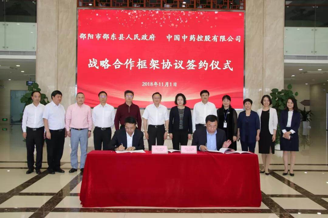 11月1日,邵陽(yáng)市委書(shū)記龔文密,市委常委李萬(wàn)千、侯文,副市長(cháng)彭華松,邵東縣委書(shū)記沈志定,中藥控股黨委書(shū)記、副總裁黃鶴,副總裁趙東吉、一方制藥副總經(jīng)理魏梅等領(lǐng)導出席中藥控股與邵東縣人民政府戰略合作簽約儀式。